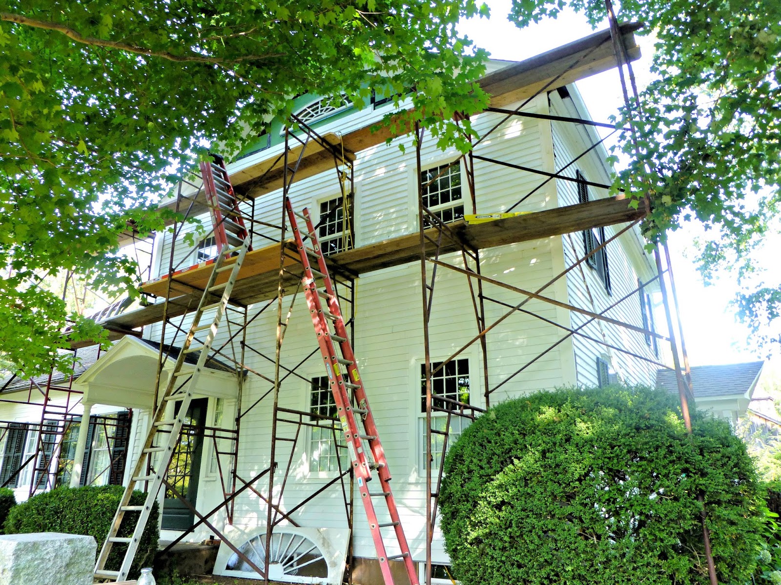 Dad and mom are staying steady on the front of the house. Can you see the eyebrow window wayyyyyup there behind the leaves of the tree? They're nearing the top! They are finally feeling confident that they'll finish before the snow flies.
