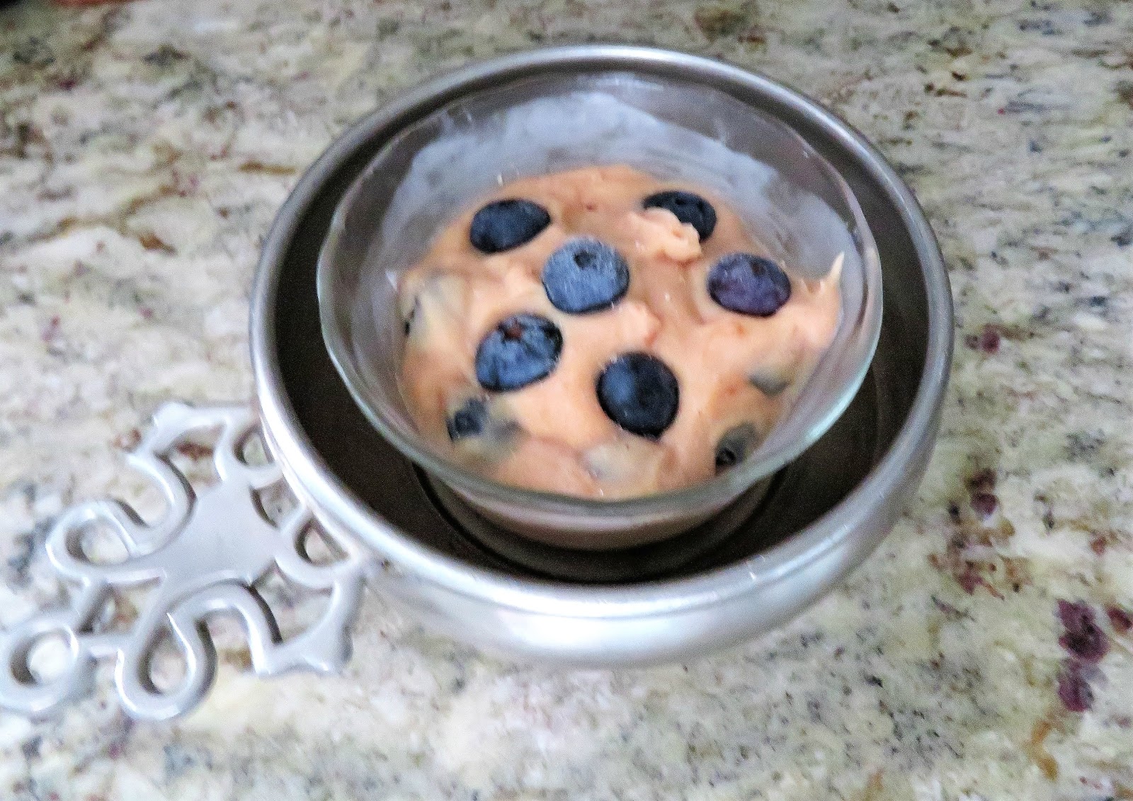 This is the back of the yarn bowl. That slot really does work and this bowl does not tip over at all. It's heavy and well made and so beautiful and mom absolutely loves it!